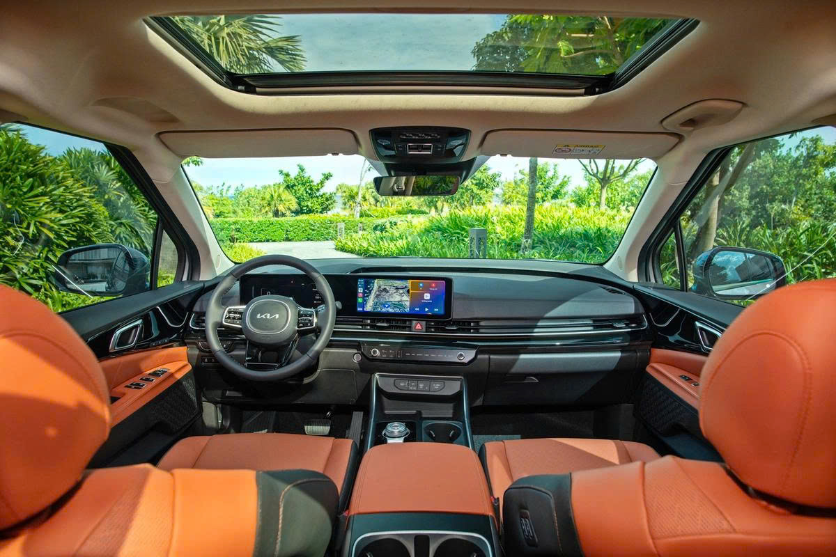 Bên trong khoang cabin, KIA New Carnival Hybrid mang đến không gian rộng rãi hàng đầu phân khúc, phù hợp cho gia đình đông người hoặc nhu cầu di chuyển dịch vụ cao cấp. Hệ thống ghế ngồi được thiết kế êm ái, chất liệu cao cấp cùng khả năng tùy chỉnh linh hoạt mang lại sự thoải mái tối đa cho hành khách. Ngoài ra, xe còn được trang bị màn hình giải trí trung tâm lớn, hệ thống âm thanh chất lượng cao và nhiều tiện ích thông minh, giúp mỗi hành trình không chỉ là di chuyển mà còn là trải nghiệm.